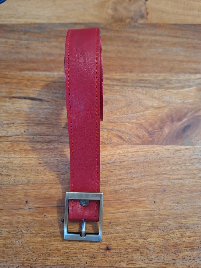 Couleur rouge, doublé cuir rouge, couture rouge.