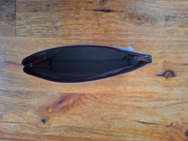 Trousse en cuir de veau gris et cuir fantaisie.