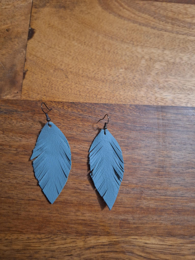 Boucles d'oreilles plumes en cuir vert d'eau.