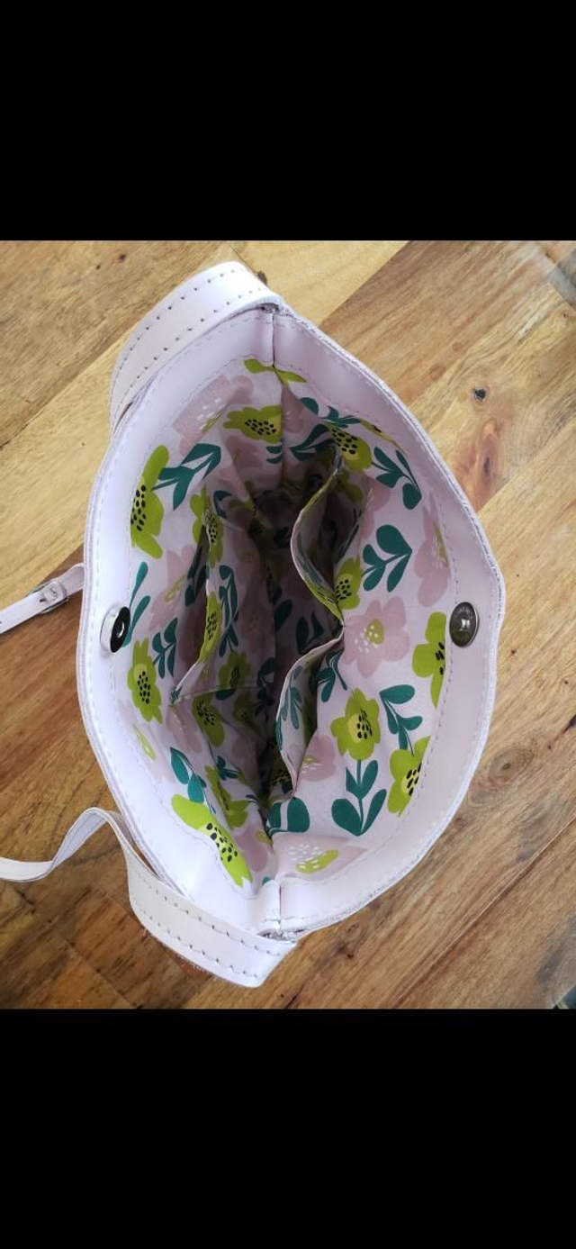 Le sac Angélique à franges est une création artisanale unique. Fabriqué en France à partir de cuir français. Il est en cuir de veau rose clair. Doublure tissu. Contient trois poches intérieures. Fermeture aimantée.