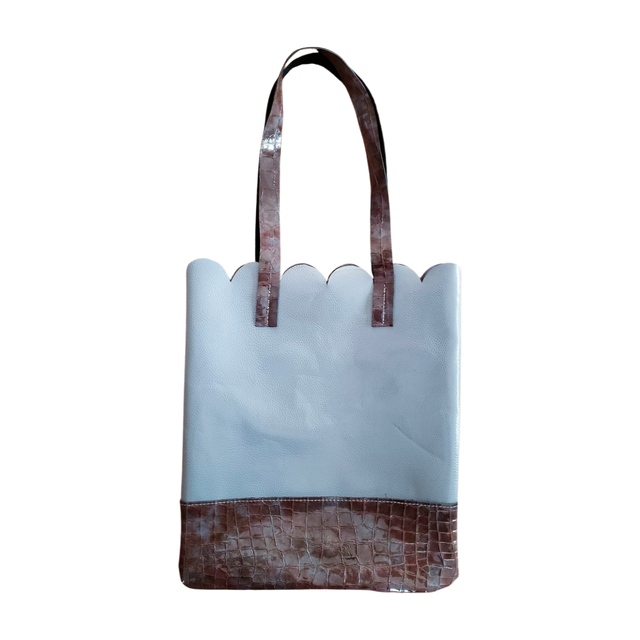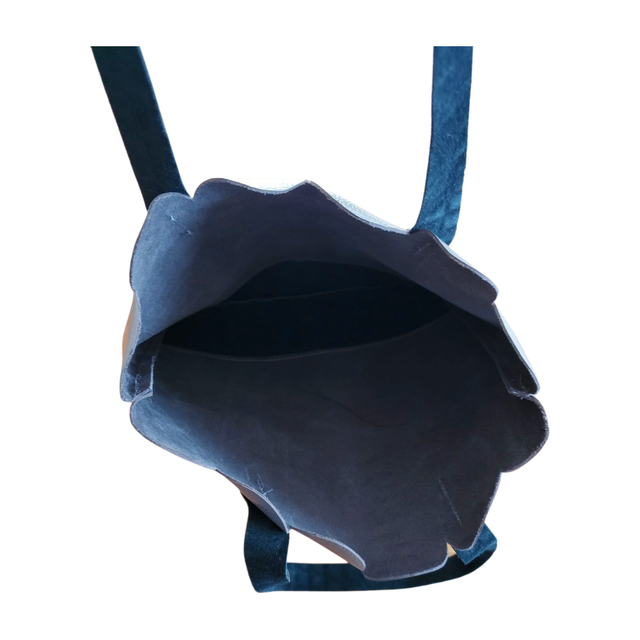 Le tote bag Fleurs est une création artisanale unique. Fabriqué en France à partir de cuir français. Couleur marron à reflet kaki et gris. Dim: L32 x H37 cm, anses 55 cm